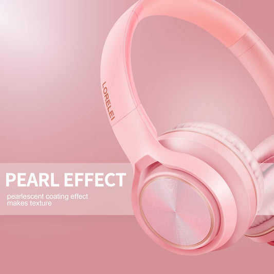 LORELEI S9 Wired Headphones with Microphone for School,On-Ear Kids Headphones for Girls Boys,Folding Lightweight and 3.5mm Audio Jack Headset for Phone, Ipad,Tablet, PC, Chromebook (Pearl Pink)