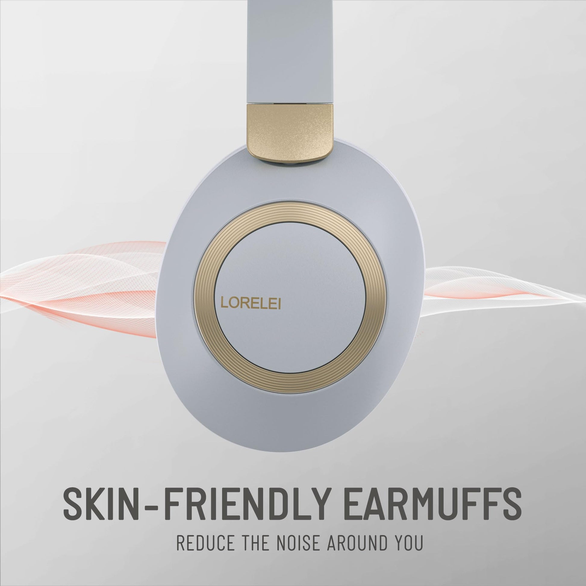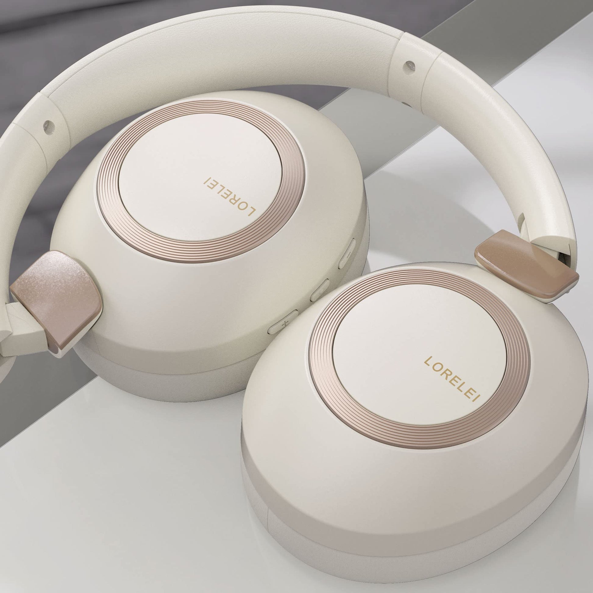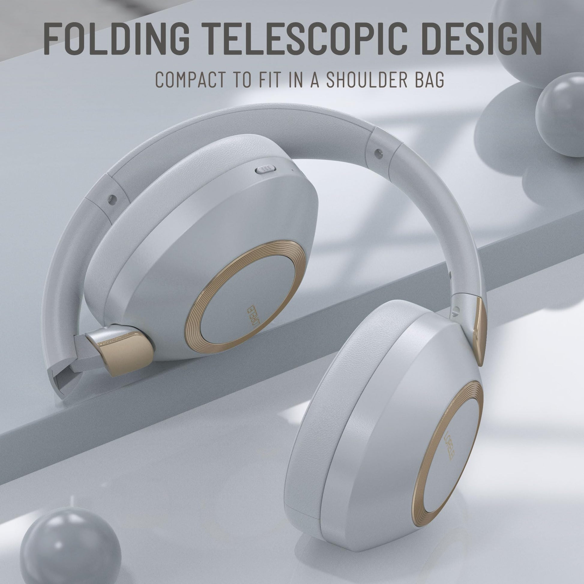 LORELEI B-C6 Wireless Over Ear Headphones, 50H Playtime Foldable Lightweight Bluetooth Headsets, Deep Bass, Built-in Microphone, Memory Foam Earmuff, for Travel, Home Office (Beige White)