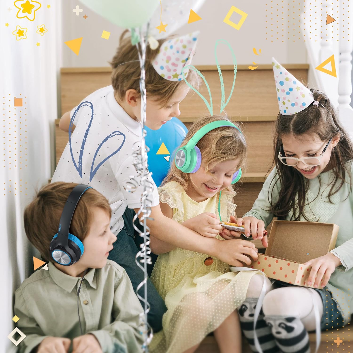 - 【85/94dB Safe Volume Control 】:Children's ears are sensitive to loud sounds and you don't want them turning the volume up and ruining their hearing! Therefore, this headphone is specially designed for children.The headphones limit the volume to 85dB for everyday use, and can also reach 94dB to ensure your child hears crystal clear sound in noisy environments like cars or airplanes