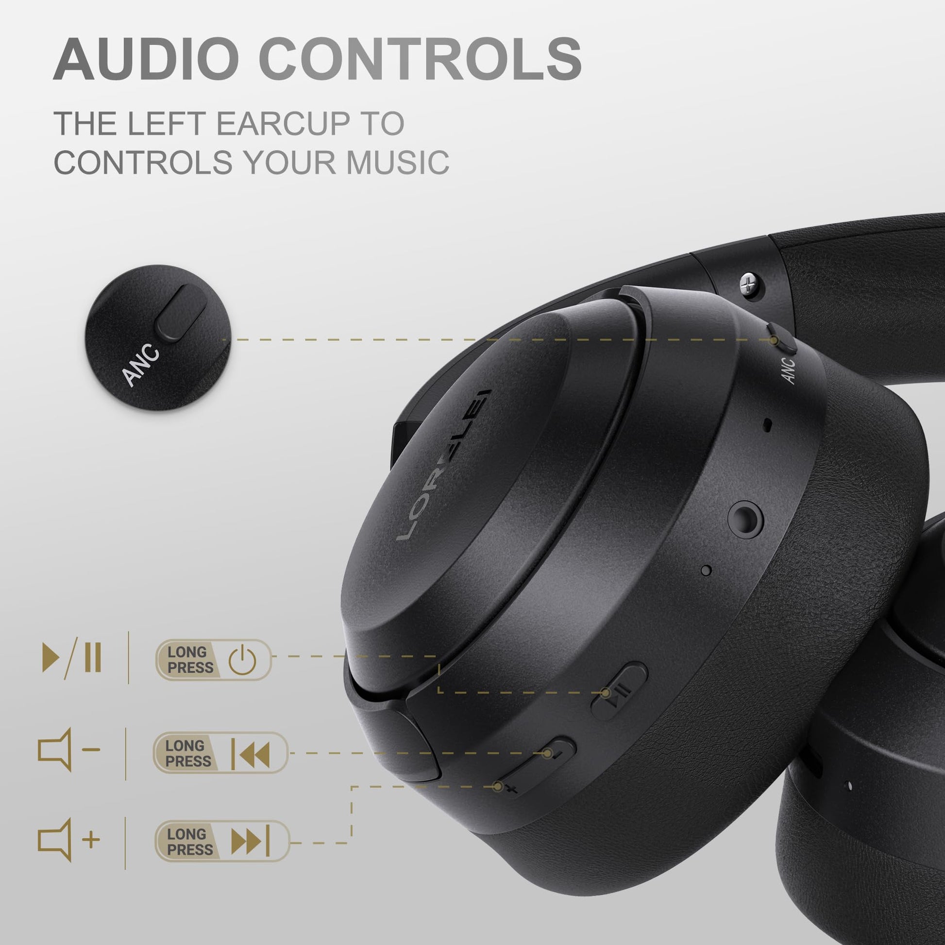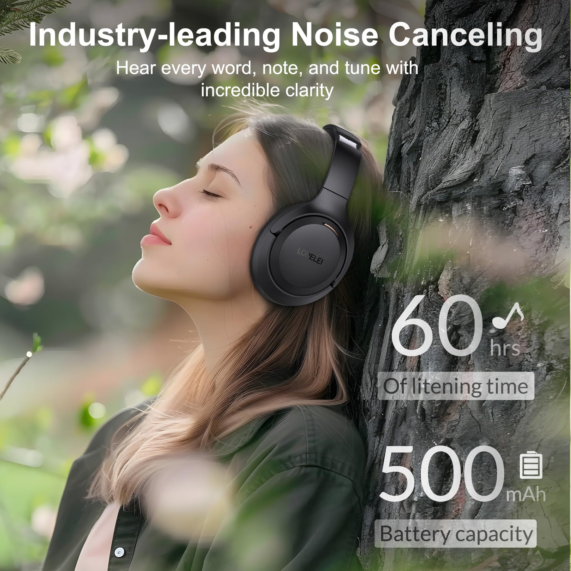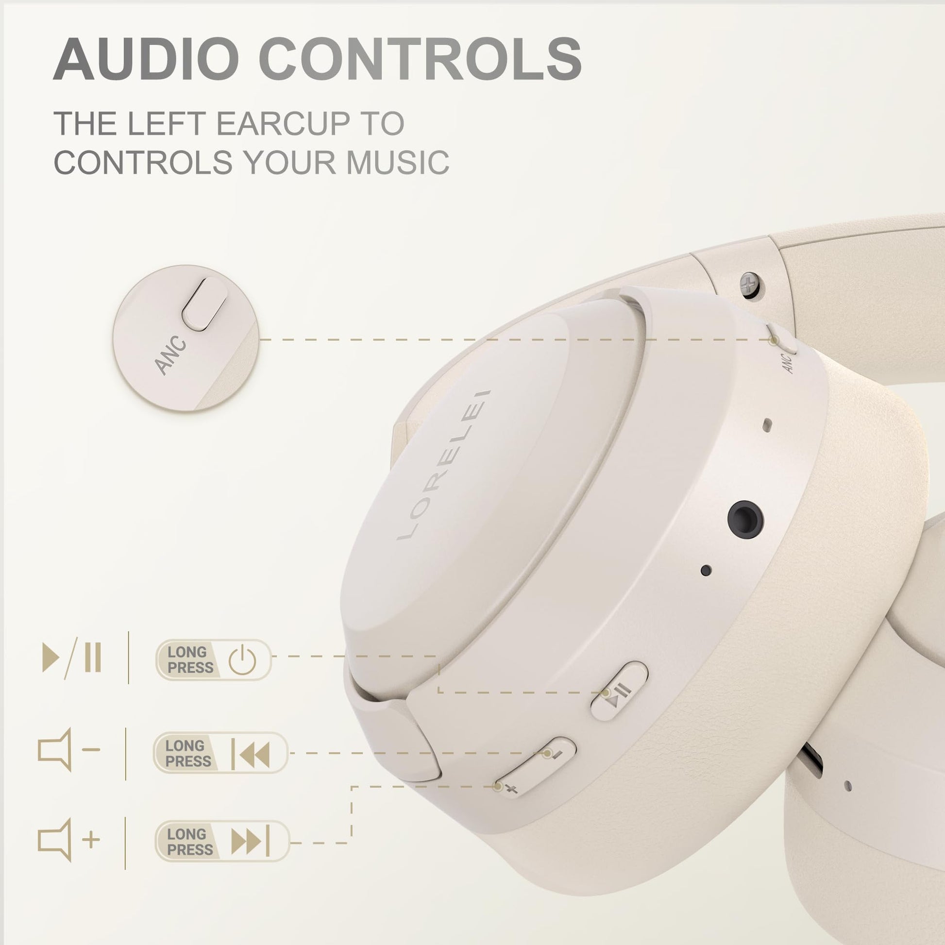 LORELEI QC60 Hybrid Active Noise Cancenlling Headphones,Wireless Over Ear Bluetooth Headsets with Microphone, 60H Playtime Foldable Lightweight, Deep Bass, Memory Earmuffs, for Travel Home Office